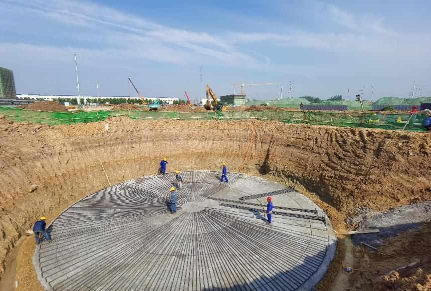 本项目于2023年8月5日正式开工建设,目前初步完成现场临时道路铺设、临设搭建、基坑降水等工作。